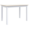 Designed with stylish lines, this wooden dining table will be a great choice for your dining room or kitchen. Made of solid rubber wood, the table frame is exceedingly durable and hardwearing. The table top is made of MDF with rubber wood veneer, which provides a stable place for you to have meals. Additionally, thanks to the polished, painted and lacquered finish, the dinner table is easy to clean with a damp cloth. The simple elegance of this dining table will make everyday dinners special. The dinner table is easy to assemble.