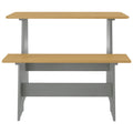 This wooden dining table with a bench is perfect for your al fresco dining or relaxing in your dining room or kitchen. Made of solid pinewood, the dinner table with bench stands out with its durability. It is easy to move around to suit any home decor setting. Good to know:The delivery includes the dining table with a bench only; corner bench is not included.