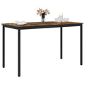 This Dining Table, designed for the kitchen and dining room, embodies a blend of modern aesthetics with practical usage. It functions as a centerpiece for meals, gatherings, and everyday activities, bringing both style and usability to your living space. The table boasts a rectangular shape that can easily fit varying room layouts, providing a versatile platform for dining and social engagement. Crafted for simplicity and elegance, its design allows it to seamlessly fit into contemporary home settings, appealing to those who appreciate functional design paired with straightforward elegance. Solid Materials: The table surface is crafted from engineered wood, offering resilience and an aesthetically pleasing look. Its robust metal legs and frame provide stability, ensuring it withstands regular use without compromising its sleek design. Functional Design: Featuring a rectangular shape, this table accommodates various room sizes and furniture arrangements. Its dimensions make it ideal for both intimate meals and hosting larger gatherings, enhancing its usability and universal appeal. Effortless Cleaning: Maintaining this dining table is simple. The sleek surface requires only a damp cloth for cleaning, ensuring it remains spotless with minimal effort, thus freeing up more of your time for enjoyment and relaxation. Practical Assembly: Assembly requires two people using a screwdriver. Its user-friendly setup ensures you can promptly enjoy your new furniture piece without unnecessary complexity. Stylish Appearance: Embodying modern style with its clean lines and understated design, it complements a wide range of interior décor, making it suitable for both contemporary and traditional settings.