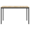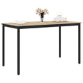 This Dining Table, designed for the kitchen and dining room, embodies a blend of modern aesthetics with practical usage. It functions as a centerpiece for meals, gatherings, and everyday activities, bringing both style and usability to your living space. The table boasts a rectangular shape that can easily fit varying room layouts, providing a versatile platform for dining and social engagement. Crafted for simplicity and elegance, its design allows it to seamlessly fit into contemporary home settings, appealing to those who appreciate functional design paired with straightforward elegance. Solid Materials: The table surface is crafted from engineered wood, offering resilience and an aesthetically pleasing look. Its robust metal legs and frame provide stability, ensuring it withstands regular use without compromising its sleek design. Functional Design: Featuring a rectangular shape, this table accommodates various room sizes and furniture arrangements. Its dimensions make it ideal for both intimate meals and hosting larger gatherings, enhancing its usability and universal appeal. Effortless Cleaning: Maintaining this dining table is simple. The sleek surface requires only a damp cloth for cleaning, ensuring it remains spotless with minimal effort, thus freeing up more of your time for enjoyment and relaxation. Practical Assembly: Assembly requires two people using a screwdriver. Its user-friendly setup ensures you can promptly enjoy your new furniture piece without unnecessary complexity. Stylish Appearance: Embodying modern style with its clean lines and understated design, it complements a wide range of interior décor, making it suitable for both contemporary and traditional settings.
