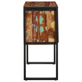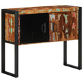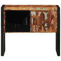 This wooden console cabinet is a perfect addition to your bedroom, living room, or office, creating a lasting impression! Robust and stable material: Solid reclaimed wood consists of reused timbers such as teak, mango wood, pinewood, and beech. These materials are recycled from old buildings such as factories, sheds, and boats. Signs of wear and visible grain structure give each piece its own history and a unique look.Ample storage: The side cabinet has 2 doors, providing enough storage space for you to keep various daily essentials organised and within easy reach.Displaying function: The tabletop of this hall cabinet is perfect for displaying your decorative items, picture frames and potted plants.Practical doors: Keep your essentials free from dust by hiding them behind the doors.Metal feet: The metal feet of the side table ensure sturdiness and stability. Warning:To prevent it from tipping over, this product must be used with the provided wall attachment device. Good to know:Each item is unique with variations in colours and grains. The delivery is random, ensuring the exclusivity and individuality of your product.