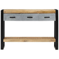 This versatile wooden console table adds style and storage to your entryway, living room, or hallway. Durable material: Solid mango wood is a strong, tropical hardwood that makes sturdy furniture. Its beautiful wood grains make every piece of furniture slightly different from the next.Storage space: The hall table is equipped with 2 drawers and a shelf for keeping your keys, cards, glasses, or some frequently-used items when hanging out.Spacious top: This side table features a spacious top surface that provides you with the perfect amount of space to highlight your important items, like decorative ornaments, a vase of flowers, framed photos, etc.Metal feet: The metal feet add a modern and calm style to your interior while ensuring stability.Warning:To prevent it being overturned, this product must be used with the provided wall attachment device.Note:The colours may vary from piece to piece, making each piece unique and slightly different from the next. The delivery is random.