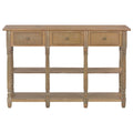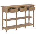 This classic console table's versatile design adds elegance and storage to your entryway, living room, or hallway. Durable material: The table is mainly made of engineered wood. The engineered wood is of exceptional quality with smooth surface and also features strength, stability and resistance to moisture.Stable legs: The legs are made of solid pine wood ensuring sturdiness and stability.Ample storage space: The hall table is equipped with 3 drawers and 2 shelves for keeping your keys, cards, glasses, or some frequently-used items when hanging out.Spacious top: This side table features a spacious top surface that provides you with the perfect amount of space to highlight your important items, like decorative ornaments, a vase of flowers, framed photos, etc. Warning:In order to prevent overturning, this product must be used with the wall attachment device provided.