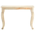 Add a touch of elegance to your home decor with our classic wooden console table! Made of solid rough mango wood, the table has a sturdy table top, on which you can place decorative items like fruit baskets or vases. Fully handmade, every step of the table process is carried out with the greatest care, be it polishing or lacquering. The curved lines add to a touch of elegance and highlight the refined craftsmanship. This product is easy to assemble. Important note: The grains vary from piece to piece, making each piece unique; the delivery is random.