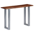 This console table features a cool, industrial style and will make a great addition to your home or office. The tabletop is made of sturdy, solid acacia wood. Its unique, U-shaped, powder-coated metal legs add to the industrial style and make the table exceedingly stable. Additionally, the wood's live edge that follows the natural shape of the tree increases the beauty of the table. The console table is easy to assemble. Please note that wood is a natural product and may show imperfections.