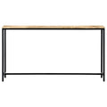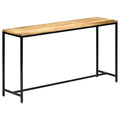 Introduce an air of industrial charm into your living space with our stylish solid wooden console table! Made of rough solid mango wood, the top of the hall table is easy to clean with a damp cloth. Mango wood is a dense and robust hardwood featuring beautiful brown or golden streaks and contours on its surface. The exquisite craftsmanship and the graceful wood grains make every piece of furniture distinctive and slightly different from the next. Every step of the process is carried out with the greatest care, be it polishing or lacquering. Additionally, its black powder-coated iron legs add to the table's stability as well as its industrial charm. Important note: Colours vary from piece to piece which make each of our side table unique. The delivery is random, ensuring the exclusivity and individuality of your product.