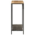This wooden console table will make a practical and decorative addition to your home decor. Durable material: Solid mango wood is a strong, tropical hardwood that makes sturdy furniture. Its beautiful wood grains make every piece of furniture slightly different from the next. Made of solid mango wood, this sofa table is sturdy and stable. Iron feet: The iron feet add a calm style to your interior while ensuring stability. Ample storage space: This hallway console table has a bottom shelf, providing space for keeping your various daily essentials well organised and within easy reach.Stable and sturdy top: The top of the hallway table is perfect for displaying your decorative items, picture frames, and potted plants. Good to know:Each item is unique with variations in colours and grains. The delivery is random, ensuring the exclusivity and individuality of your product.