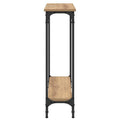 This Industrial Console Table balances aesthetics and function, perfect for urban homes. With a robust metal frame and classic engineered wood finish, it embodies industrial style. Its rectangular form brings a structured, elegant look, offering a convenient solution for display and storage against any wall. Material Composition: The console table's main surface is crafted from engineered wood, offering a smooth and refined matte finish. This material choice ensures a balance between longevity and visual appeal, allowing homeowners to enjoy its ambiance in their living spaces without frequent upkeep. Frame with Metal Accents: The table features a robust metal frame powder-coated for a matte appearance, enhancing its strength and offering a subtle urban design element. This fusion of textures not only adds appeal but provides a stable platform for decor and various stored items. Functional Storage Shelves: Featuring board shelves made of engineered wood, this table offers practical storage solutions for organizing various living room essentials. These shelves enhance convenience, allowing easy access to items like books, decorative pieces, or small electronics. Industrial Design Flair: Combining black finishes with a straightforward rectangular shape, the table exudes an industrial flair, fitting right into urban loft or warehouse-inspired interiors. Its design integrates seamlessly into contemporary settings, serving both aesthetic and functional roles. Easy Care and Maintenance: Keeping this table clean is simple. A quick wipe with a damp cloth removes dust, and the table is maintained by avoiding any harsh chemicals. For assembly, a screwdriver is required, making it accessible for most homeowners in setup while ensuring the lasting appeal of its components.
