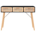 Add a Scandinavian touch to your room with this console table! It makes a practical and decorative addition to your home. Durable material: The engineered wood is of exceptional quality with smooth surface and also features strength, stability and resistance to moisture.Ample storage space: Equipped with 3 drawers, the table offers ample storage space for keeping various daily essentials well organised and within easy reach. Also, the nature rattan weaving design adds extra beauty.Solid pinewood feet: The wooden feet give the hall table a natural and pleasant look while ensuring stability. It can blend well with any interior decor.Sturdy top: The side table has a sturdy top, which is perfect for placing potted plants, framed photos, and other decorative items. Note:Each product comes with an assembly manual in the box for easy assembly. Warning:In order to prevent overturning, this product must be used with the wall attachment device provided.