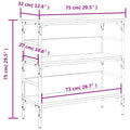 Add a touch of elegance to your entryway, living room, or hallway with this stylish console table. Durable material: The engineered wood is of exceptional quality with smooth surface and also features strength, stability and resistance to moisture. Made of engineered wood, the sofa table is easy to clean.Ample storage space: The hall table with several shelves offers ample storage space for keeping your magazines, books, decorative items, and other daily essentials well-organised and within reach.Adjustable feet: The adjustable feet with plastic pads keep the hallway table balanced on uneven ground and increase stability.Metal frame: The metal frame adds an industrial style to your interior while ensuring durability and stability. Warning:To prevent it being overturned, this product must be used with the provided wall attachment device.