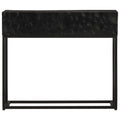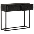 This wooden console table will make a practical and decorative addition to your home decor. Solid mango wood: Solid mango wood is a strong, tropical hardwood that makes sturdy furniture. Its beautiful wood grains make every piece of furniture slightly different from the next. Ample storage space: The sofa table offers handy storage space to keep things organised and within easy reach. Stable top: The top of the hall table is perfect for displaying your decorative items, picture frames and potted plants. Sturdy legs: The iron legs add the bedroom furniture's sturdiness and stability. Warning:To prevent it from tipping over, this product must be used with the provided wall attachment device.