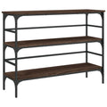 Add a touch of elegance to your entryway, living room, or hallway with this stylish console table. Durable material: The engineered wood is of exceptional quality with smooth surface and also features strength, stability and resistance to moisture. Made of engineered wood, the sofa table is easy to clean.Ample storage space: The hall table with several shelves offers ample storage space for keeping your magazines, books, decorative items, and other daily essentials well-organised and within reach.Adjustable feet: The adjustable feet with plastic pads keep the hallway table balanced on uneven ground and increase stability.Metal frame: The metal frame adds an industrial style to your interior while ensuring durability and stability. Warning:To prevent it being overturned, this product must be used with the provided wall attachment device.
