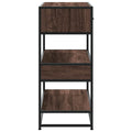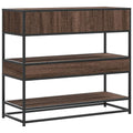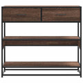 This console table offers ample storage space while complementing your home decor. It’s perfect for the living room, bedroom, and hallways. Stable and durable material: Engineered wood is a durable and stable material with a smooth surface that is resistant to moisture, warping, and splitting, making it a reliable choice for a variety of projects.Stable and long-lasting frame: The metal frame of the sofa table enhances your interior with an industrial style and provides exceptional durability, stability and resistance to corrosion.Ample storage space: This hall table has drawers and shelves to provide storage space to keep your magazines, books, remote controls, and other small items within reach.Sturdy tabletop: The hallway table has a sturdy tabletop, on which you can place food or drinks, or display decorative objects like photo frames or even potted plants.Easy to maintain: Thanks to its smooth surface, the hallway stand is easy to clean with a damp cloth and requires less maintenance. Warning:To prevent it from tipping over, this product must be used with the provided wall attachment device.