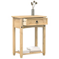 This classic wooden console table will make a practical and decorative addition to your home decor. Solid pine wood: Solid pine wood is a beautiful natural material. Pine wood has a straight grain, and the knots give the material its signature, rustic look. Made of solid pinewood, the sofa table is sturdy and stable.Ample storage space: This practical hall table has 1 drawer and a bottom shelf, providing ample space for keeping your books, plants, storage boxes, decorations, etc.Displaying function: You can also place your favourite photos, decorations, or flowers on top of the side table to enrich your life.Metal handle: The metal handle of the end table makes it convenient to open and close the drawer and makes the hallway stand more attractive. Warning:To prevent it from tipping over, this product must be used with the provided wall attachment device.
