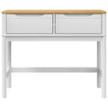 This classic console table will make a practical and decorative addition to your home decor. Solid pine wood: Solid pine wood is a beautiful natural material. Pine wood has a straight grain, and the knots give the material its signature, rustic look. Made of solid pinewood, the table is sturdy and stable.Ample storage space: This practical hall table has 2 drawers, providing ample space for keeping your books, storage boxes, decorations, etc.Displaying function: You can also place your favourite photos, decorations, or flowers on top of the side table to enrich your life.Wooden legs: The wooden legs give the product a natural and pleasant look while ensuring stability. It can blend well with any interior decor. Warning:To prevent it from tipping over, this product must be used with the wall attachment device (not provided).