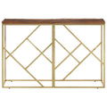 Combining functionality and beauty, this console table will be the focal point of your room. Solid sleeper wood top: The top of the sofa table provides a secure and ample surface to place vases, potted plants, or other decorative items.Sturdy and stable frame: The stainless steel frame of the hall table ensures sturdiness and stability.Easy maintenance: This hallway table with stain-resistant surface is easy to wipe clean and you can effortlessly keep the table looking its best.Simple design: This hallway console table has a simple and modern design that complements any room decor.