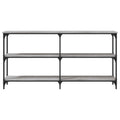 Add a touch of elegance to your entryway, living room, or hallway with this stylish console table. Durable material: The engineered wood is of exceptional quality with smooth surface and also features strength, stability and resistance to moisture. Made of engineered wood, the sofa table is easy to clean.Ample storage space: The hall table offers ample storage space for keeping your magazines, books, decorative items, and other daily essentials well-organised and within reach.Adjustable feet: Six adjustable feet with plastic pads keep the hallway table balanced on uneven ground and increase stability.Metal frame: The metal frame adds an industrial style to your interior while ensuring durability and stability. Warning:To prevent it being overturned, this product must be used with the provided wall attachment device.