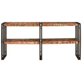The Rustic Wooden Console Table is a stylish and practical addition to any hallway, easily bridging rustic charm with modern needs. Its rectangular shape and textured surface make it a standout feature that welcomes guests into your home. Designed for both showcasing decorative items and storing everyday essentials, this Console Table fits right in, boosting a room’s natural look while offering great storage. Opaque Materials: Made with opaque elements, this table captures a classic rustic vibe that brings in warm, soft light without harsh reflections. It creates a cosy atmosphere, enhancing the welcoming feel of your home. The unique texture adds depth and character, making it a great fit for various styles. Robust Steel Framework: With a sturdy steel frame, this console table is built to handle daily use while looking good. The steel legs and frame offer reliable support, keeping the table sturdy for years. This mix of materials ensures it’s strong enough for any busy household. Ample Storage Space: The built-in shelves provide plenty of room for organising or showing off your favourite things. Perfect for displaying decorative pieces or keeping essentials where you need them, the shelf design blends style with practicality for modern living. Indoor Utility: Made just for indoor use, this console table shines in hallways where space is limited. It has a slim yet substantial top, perfect for decorative or functional items while fitting snugly against walls for the best use of space. Simple Care: Keeping it clean is a breeze thanks to its tough surface; just steer clear of harsh chemicals or abrasives to keep it in top shape. This means you have less to do to enjoy its long-lasting good looks.