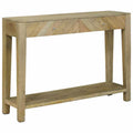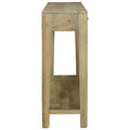 This Modern Console Table offers a refined home furnishing option with its seamless fusion of style and practicality. As a quintessential embodiment of modern design, it effortlessly enhances any living space with its clean lines and sleek, rectangular shape. Whether displayed in a sophisticated living room or a lively entryway, this console table exudes elegance while offering practical storage and display solutions. High-Quality Solid Mango Wood: This table is crafted from solid Mango wood which offers remarkable durability and a visually pleasing grain pattern. Ideal for long-lasting use, the wood's innate strength supports substantial weight while maintaining its elegance and charm over time, promising years of satisfaction and enduring style. Board Shelves for Versatility: The table features board shelves that are comparable to plank shelves but can be made of various materials like MDF, particle board, or plywood. These straightforward shelving solutions enhance the table's functionality, providing ample space for decorative accents or everyday essentials without compromising on aesthetic appeal. Modern Rectangular Form Factor: Boasting a rectangular shape, this console table represents the pinnacle of simplicity and functionality typical of modern furniture design. It fits snugly against walls in compact spaces such as hallways or living rooms, optimizing space efficiently for a cleaner and more organized home atmosphere. Ergonomic Square Legs: Equipped with square legs crafted from solid Mango wood, the table ensures stability and support for all its components. These sturdy legs, with their minimalist appeal, align perfectly with modern styling while fulfilling functionality above all. Minimal Maintenance: Cleaning is made easy with a simple wipe using a dry cloth. This requires minimal maintenance effort, preserving its appearance and condition through everyday use. As simple as it gets, this care routine adds to the table's appeal for those seeking practicality along with style.