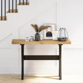 Upgrade your living space with the solid pine wood console table, designed to blend authentic appeal and practicality. Stable and durable material: Solid pinewood is known for its strength and durability. Its straight grains and distinctive knots contribute to its rustic charm.Practical tabletop: The sturdy tabletop of the hall table is perfect for placing photo frames, drinks, magazines, and other decorative items.Sturdy table legs: The wooden X-shaped legs not only offer a rustic aesthetic but also provide exceptional support and stability to the table.Versatile use: The hallway table offers practical functionality, whether used as an entryway organiser, a display surface for décor, or a workspace in a hallway or living room. Its robust frame and rustic design make it a perfect fit for different spaces, blending practicality with natural charm.Easy maintenance: Thanks to its smooth surface, the entry table is easy to clean with a damp cloth and requires less maintenance.