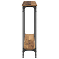 This Industrial Console Table balances aesthetics and function, perfect for urban homes. With a robust metal frame and classic engineered wood finish, it embodies industrial style. Its rectangular form brings a structured, elegant look, offering a convenient solution for display and storage against any wall. Material Composition: The console table's main surface is crafted from engineered wood, offering a smooth and refined matte finish. This material choice ensures a balance between longevity and visual appeal, allowing homeowners to enjoy its ambiance in their living spaces without frequent upkeep. Frame with Metal Accents: The table features a robust metal frame powder-coated for a matte appearance, enhancing its strength and offering a subtle urban design element. This fusion of textures not only adds appeal but provides a stable platform for decor and various stored items. Functional Storage Shelves: Featuring board shelves made of engineered wood, this table offers practical storage solutions for organizing various living room essentials. These shelves enhance convenience, allowing easy access to items like books, decorative pieces, or small electronics. Industrial Design Flair: Combining black finishes with a straightforward rectangular shape, the table exudes an industrial flair, fitting right into urban loft or warehouse-inspired interiors. Its design integrates seamlessly into contemporary settings, serving both aesthetic and functional roles. Easy Care and Maintenance: Keeping this table clean is simple. A quick wipe with a damp cloth removes dust, and the table is maintained by avoiding any harsh chemicals. For assembly, a screwdriver is required, making it accessible for most homeowners in setup while ensuring the lasting appeal of its components.