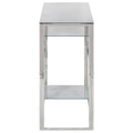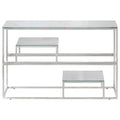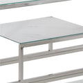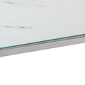 Combining functionality and beauty, this console table will be the focal point of your room. Glass top with white marble finish: The top of the sofa table provides a secure and ample surface to place vases, potted plants, or other decorative items. Sturdy and stable frame: The stainless steel frame of the hall table ensures sturdiness and stability. Easy maintenance: This hallway table with stain-resistant surface is easy to wipe clean and you can effortlessly keep the table looking its best. Simple design: This hallway console table has a simple and modern design that complements any room decor.