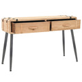 This retro-style wooden console table exudes a rustic charm that will make a decorative addition to your living room decor. This highly stable and durable side table was crafted from solid fir wood. The sturdy top is ideal for displaying decorative items like vases, photo albums, or potted plants, or for keeping snacks and drinks. The drawers provide ample space for keeping your various items neatly organised. The special luggage design adds to the table's vintage style. Assembly is easy.