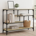 Add a touch of elegance to your entryway, living room, or hallway with this stylish console table. Durable material: The engineered wood is of exceptional quality with smooth surface and also features strength, stability and resistance to moisture. Made of engineered wood, the sofa table is easy to clean.Ample storage space: The hall table with several shelves offers ample storage space for keeping your magazines, books, decorative items, and other daily essentials well-organised and within reach.Adjustable feet: The adjustable feet with plastic pads keep the hallway table balanced on uneven ground and increase stability.Metal frame: The metal frame adds an industrial style to your interior while ensuring durability and stability. Warning:To prevent it being overturned, this product must be used with the provided wall attachment device.