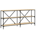 Add a touch of elegance to your entryway, living room, or hallway with this stylish console table. Durable material: The hall table is made of engineered wood. The engineered wood is of exceptional quality with smooth surface and also features strength, stability and resistance to moisture. Sturdy frame: The iron frame ensures sturdiness and stability. And the back has double X-frame crossbars for added stability, so you don't have to worry about wobbling on the floor.Ample storage space: The sofa table offers ample storage space for keeping your daily essentials well organised and within reach. Sturdy tabletop: The sturdy tabletop of the hallway table is perfect for placing your framed photos, potted plants, and other decorative items.Adjustable feet: Four adjustable feet with plastic pads keep the side table balanced on uneven ground and increase stability. Warning:To prevent it being overturned, this product must be used with the provided wall attachment device.