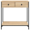 Add a touch of elegance to your entryway, living room, or hallway with this stylish console table. Durable material: The engineered wood is of exceptional quality with smooth surface and also features strength, stability and resistance to moisture. Made of engineered wood, the sofa table is easy to clean.Ample storage space: The hall table offers ample storage space for keeping your magazines, books, decorative items, and other daily essentials well-organised and within reach.Adjustable feet: Four adjustable feet with plastic pads keep the hallway table balanced on uneven ground and increase stability.Metal frame: The metal frame adds an industrial style to your interior while ensuring durability and stability. Warning:To prevent it being overturned, this product must be used with the provided wall attachment device.