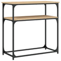 Add a touch of elegance to your entryway, living room, or hallway with this stylish console table. Durable material: The engineered wood is of exceptional quality with smooth surface and also features strength, stability and resistance to moisture. Made of engineered wood, the sofa table is easy to clean.Ample storage space: The hall table offers ample storage space for keeping your magazines, books, decorative items, and other daily essentials well-organised and within reach.Adjustable feet: Four adjustable feet with plastic pads keep the hallway table balanced on uneven ground and increase stability.Metal frame: The metal frame adds an industrial style to your interior while ensuring durability and stability. Warning:To prevent it being overturned, this product must be used with the provided wall attachment device.