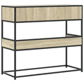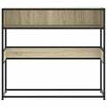 This console table offers ample storage space while complementing your home decor. It’s perfect for the living room, bedroom, and hallways. Stable and durable material: Engineered wood is a durable and stable material with a smooth surface that is resistant to moisture, warping, and splitting, making it a reliable choice for a variety of projects.Stable and long-lasting frame: The metal frame of the sofa table enhances your interior with an industrial style and provides exceptional durability, stability and resistance to corrosion.Ample storage space: This hall table provides ample storage space for keeping your magazines, books, remote controls, and other small items within reach.Sturdy tabletop: The hallway table has a sturdy tabletop, on which you can place food or drinks, or display decorative objects like photo frames or even potted plants.Easy to maintain: Thanks to its smooth surface, the hallway stand is easy to clean with a damp cloth and requires less maintenance. Warning:To prevent it from tipping over, this product must be used with the provided wall attachment device.