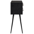 This wooden console table is perfect for bringing a simple yet stylish presence to your living space. Durable material: This hall table is made of reclaimed teak, which means that every piece of furniture is unique and slightly different from the next. Solid teak wood is a beautiful natural material. It has been seasoned, kiln dried and then finely sanded to give a very smooth appearance. Teak wood is known for its exceptional strength and weather resistance.Robust and stable frame: The iron frame provides sturdiness and stability.Ample storage space: The side table has drawers, providing enough storage space for you to keep various daily essentials organised and within easy reach.Sturdy top: The end table' wooden tabletop is perfect for displaying your decorative items, picture frames and potted plants.Wide applications: This sofa table is suitable anywhere in your house. It can be used as an entryway table, couch table, accent table, TV console table etc. Warning:To prevent it being overturned, this product must be used with the provided wall attachment device.Good to know:Each item is unique with variations in colours and grains. The delivery is random, ensuring the exclusivity and individuality of your product.