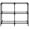 Combining functionality and beauty, this console table will be the focal point of your room. Glass top: The top of the sofa table provides a visible and ample surface to place vases, potted plants, or other decorative items.Sturdy and stable frame: The stainless steel frame of the hall table ensures sturdiness and stability.Easy maintenance: This hallway table with stain-resistant surface is easy to wipe clean and you can effortlessly keep the table looking its best.Simple design: This hallway console table has a simple and modern design that complements any room decor. Warning:To prevent it from tipping over, this product must be used with the provided wall attachment device.