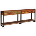 This console table set is spot on for any foyer, living room, or hallway. It's got a rustic charm that just brightens up the place. With a sturdy yet stylish look, it blends in easily with all sorts of interiors. The rectangular shape and natural colours make it a smart choice for storage, giving you function and a bit of flair in one go. Materials: Made with quality iron for long-lasting strength and durability. These tables are built tough to stay stable while looking rustic. The iron not only holds up against wear and tear but adds a nice rugged vibe as well. Included Components: The set includes drawers that are easy to reach, fitted with classic handles for convenience and a traditional look. Everything’s designed to be both practical and comfy, without skimping on style. Sturdy square legs form a solid base, and the powder-coated finish gives it a sleek, classy touch. Features / Function / Design: These console tables offer loads of storage while keeping it classy. The big surface lets you show off your decor or keep essentials close at hand. Plus, they're lightweight and easy to move around, so they can fit in with your ever-changing home setup. Recommended Uses: Ideal for foyers, living rooms, and hallways. Kick off your home’s design with these versatile tables. They'll instantly lift the vibe and functionality of any room by mixing rustic charm with urban style. Care & Maintenance: For stability, secure the tall furniture to walls using the provided hardware. Keep them looking good by dusting regularly and focusing on hard-to-reach spots. Avoid harsh chemicals and wet cleaning methods – keeping it simple will help maintain their look and charm for years to come.