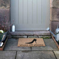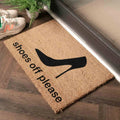 * The doormat's message, "Shoes Off Please", serves as a polite reminder to guests to remove their shoes before entering the home, helping to keep floors clean and dust-free.