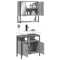 This handy bathroom furniture set, featuring spacious storage space, is an excellent addition to your bathroom, giving it a tidy and striking appearance! Durable material: The engineered wood is of exceptional quality with a smooth surface and features strength, stability and resistance to moisture.Ample storage space: The bathroom furniture provides various storage options and spacious space for you to store items in your bathroom.Wall-mounted function: The washroom mirror cabinet can be wall-mounted to save floor space, which makes it especially suitable for rooms with limited space.Space-saving design: The top of the bathroom cabinet is ideal for placing the sink so that you can fully utilise the vacant space under the sink.Clear image: The glass mirror face provides a fine and non-distorted reflection, so it is suitable for making up, shaving or checking the suit before going out. Warning:To prevent it from tipping over, this product must be used with the wall attachment device (not provided). Good to know:Screws and plugs for inside the wall are not included. We advise to find and use screws and plugs suitable specifically for your walls. If you're not sure, you can consult with a professional. Please read and follow each step of the instructions.
