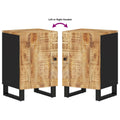 This bathroom cabinet is a great choice for your bathroom, making it tidy and organised! Solid mango wood: This bathroom cabinet is made of solid mango wood combined with engineered wood. Solid mango wood is a strong, tropical hardwood that makes sturdy furniture. Its beautiful wood grains make every piece of furniture slightly different from the next.Ample storage space: The bathroom furniture has 2 compartments, offering various storage options and extra space to store items in your bathroom.Stable feet: The iron feet of the bathroom cabinet ensure sturdiness and stability.Flexible door: You can install the door either on the left side or right side based on your own needs. Warning:To prevent it being overturned, this product must be used with the provided wall attachment device. Good to know:Each item is unique with variations in colours and grains. The delivery is random, ensuring the exclusivity and individuality of your product.
