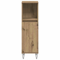 This bathroom cabinet is meant to be a great addition to your bathroom, giving it a tidy and striking appearance!Durable material: The engineered wood is of exceptional quality with smooth surface and also features strength, stability, and resistance to moisture.Ample storage space: The bathroom furniture has 2 compartments with door and 1 open shelf, offering various storage options and extra space to store items in your bathroom.Flexible door installation: You can install the door either on the left or right side based on your own needs.Iron feet: The iron feet add an industrial style to your interior while ensuring the stability of the bathroom storage cabinet.Warning:To prevent it from tipping over, this product must be used with the wall attachment device (not provided).
