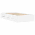 Add a modern touch to your bedroom with this bed frame with drawers! It makes a practical and decorative addition to your living space. Durable material: The bed frame is made of engineered wood. The engineered wood is of exceptional quality with a smooth surface and also features strength, stability, and resistance to moisture.Sturdy slats: The plywood slats provide good weight distribution, ensuring the mattress stays in place with every twist and turn of your body during sleep.Storage function: The included bed drawers provide ample storage space for storing your essentials, keeping your room clean and tidy. Good to know:A mattress is not included with this bed. We do offer a various selection of mattresses. You can check our shop for a matching mattress.