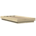 Get a better restful night's sleep from this bed frame with LED lights! It makes a welcoming addition to any bedroom. Durable material: The engineered wood is of exceptional quality with smooth surface and also features strength, stability and resistance to moisture. RGB LED lights: The bed frame is equipped with vibrant RGB LED lights. With various customisable menus, you can effortlessly change the colour of the lights and even set them to adjust automatically. These LED lights not only enhance the contemporary look of the bed base but also add to its trendy appeal. Sturdy slats: The plywood slats provide good weight distribution, ensuring that the mattress stays in place with every twist and turn of your body during sleep. Good to know:A mattress is not included with this bed. We do offer a various selection of mattresses. You can check our shop for a matching mattress. The product has a USB connector that requires a certified 5V USB power source (not included).