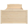 This bed frame is a practical and decorative addition to your bedroom. Premium material: Solid pine wood is a beautiful natural material. Pine wood has a straight grain, and the knots give the material its signature, rustic look.Sturdy slats: The sturdy slats offer the needed support and comfort. You can enjoy great sleeping experience every night on this bed!Storage function: The included bed drawers provide ample storage space for storing your essentials, keeping your room clean and tidy. Note:The delivery includes the bed frame only. Mattresses are not included. You can check our shop for the matching mattresses.