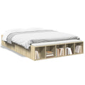 Add a modern touch to your bedroom with this bed frame! It makes a practical and decorative addition to your living space. Durable material: The bed frame is made of engineered wood. The engineered wood is of exceptional quality with a smooth surface and also features strength, stability, and resistance to moisture.Sturdy slats: The plywood slats provide good weight distribution, ensuring the mattress stays in place with every twist and turn of your body during sleep.Storage function: The included bed compartments provide ample storage space for storing your essentials, keeping your room clean and tidy. Good to know:A mattress is not included with this bed. We do offer a various selection of mattresses. You can check our shop for a matching mattress.