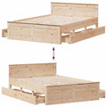 Get a better restful night's sleep from this bed frame! It makes a welcoming addition to any bedroom. Stable and long-lasting frame: Solid pinewood is known for its strength and durability. Its straight grains and distinctive knots contribute to its rustic charm.Slatted base for optimal support: The bed frame is equipped with a slatted base for support and breathability for your mattress.Stable and durable feet: This bed is supported by sturdy feet, ensuring stability, safety, and firmness.Functional headboard: The headboard of the wooden bed can keep your mattress in place. Also, the headboard provides you with excellent back support when you sit up in bed to read or watch TV.Storage function: This bed frame offers drawers for keeping your magazines, books, toys and other small items well-organised. Good to know:A mattress is not included with this bed. We do offer a various selection of mattresses. You can check our shop for a matching mattress.