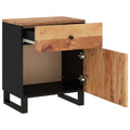 Add an industrial touch to your room with the bedside cabinet! It makes a practical and decorative addition to your home. Solid acacia wood: Solid acacia wood is a beautiful natural material. Acacia wood is a tropical hardwood, which is dense, sturdy, and durable.Ample storage space: Equipped with a drawer and a compartment, the bedside table offers ample storage space for keeping various daily essentials well organised and within easy reach.Sturdy top: The side cabinet has a sturdy top, which is perfect for placing your cups, books and some decorative items.Metal legs: The metal legs of this bedroom furniture ensure sturdiness and stability. Warning:In order to prevent overturning, this product must be used with the wall attachment device provided. Note:Each product comes with an assembly manual in the box for easy assembly.The colours may vary from piece to piece, making each piece unique and slightly different from the next. The delivery is random, ensuring the exclusivity and individuality of your product.
