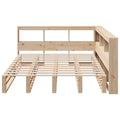 Get a better restful night's sleep from this bookcase bed! It makes a welcoming addition to any bedroom. Stable and long-lasting frame: Solid pinewood is known for its strength and durability. Its straight grains and distinctive knots contribute to its rustic charm.Slatted base for optimal support: The bed frame is equipped with a slatted base for support and breathability for your mattress.Ample storage space: This headboard features built-in storage to keep books, decorative items, and essentials organised and within reach, adding functionality and style to your bedroom.Two assembly ways: This bookcase headboard offers flexible assembly options, allowing you to place its long side on either the left or right side to match your bedroom space.Space saving: This L-shaped headboard fits snugly against the bed, creating a partial enclosure to maximise bedroom space. It is an ideal choice for smaller or more confined areas. Good to know:A mattress is not included with this bed. We do offer a various selection of mattresses. You can check our shop for a matching mattress.