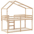 This kids' bunk bed with roof is elegant and functional, making it a perfect addition to any room with limited space. Solid pine wood: Solid pine wood is a beautiful natural material. Pine wood has a straight grain, and the knots give the material its signature, rustic look.Safe design: The loft bed is designed with safety in mind. It features guardrails to keep the user from rolling out while sleeping.Plywood slats: The plywood slats provide good weight distribution, ensuring that the mattress stays in place with every twist and turn of your body during sleep.Great fun: By combining the roof with your child's bed, you can create a hideaway that offers your kid lots of bedtime fun. This innovative addition will not only be a thrilling focal point but will also bring wonder and excitement to the kids' room.Suitable for limited space: The bed frame makes an excellent choice for any room with limited space, it provides two individual beds with compact design.Open side door: The roof features an open side door, providing easy access for your kids to get in and out of bed. Good to know:A mattress is not included with this bed. We do offer a various selection of mattresses. You can check our shop for a matching mattress.