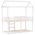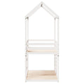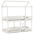 This kids' bunk bed with roof is elegant and functional, making it a perfect addition to any room with limited space. Solid pine wood: Solid pine wood is a beautiful natural material. Pine wood has a straight grain, and the knots give the material its signature, rustic look.Safe design: The loft bed is designed with safety in mind. It features guardrails to keep the user from rolling out while sleeping.Plywood slats: The plywood slats provide good weight distribution, ensuring that the mattress stays in place with every twist and turn of your body during sleep.Great fun: By combining the roof with your child's bed, you can create a hideaway that offers your kid lots of bedtime fun. This innovative addition will not only be a thrilling focal point but will also bring wonder and excitement to the kids' room.Suitable for limited space: The bed frame makes an excellent choice for any room with limited space, it provides two individual beds with compact design.Open side door: The roof features an open side door, providing easy access for your kids to get in and out of bed. Good to know:A mattress is not included with this bed. We do offer a various selection of mattresses. You can check our shop for a matching mattress.