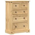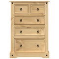 This wooden chest of drawers, featuring a timeless look, is meant to be an excellent addition to your home. Solid pine wood: Solid pine wood is a beautiful natural material. Pine wood has a straight grain, and the knots give the material its signature, rustic look. Made of solid pine wood, the drawer chest is durable and sturdy.Ample storage space: The storage cabinet has 5 drawers of different sizes, providing ample space for your different storage needs and keeping your things organised.Easy to maintain: The sideboard cabinet is easy to clean with a damp cloth and requires less maintenance.Metal handles: The cabinet with drawers comes with metal ring handles that make the drawers easy to open and close while adding extra beauty. Warning:To prevent it from tipping over, this product must be used with the provided wall attachment device.