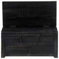 Featuring a rustic charm, this stunning wooden coffee table will make a timeless addition to your decor. Its solid table top provides a stable and secure surface, on which you can place drinks, vases, fruit bowls and other ornaments. This practical coffee table will be perfect for placing multimedia appliances, books, magazines, or small items you'd like to keep within reach. Thanks to the sturdy construction and mango wood material, the table is exceedingly durable. Mango wood is a dense and robust hardwood which has beautiful streaks and contours on its surface. Every step of the process is carried out with the greatest care, be it polishing, painting or lacquering. It has 5 drawers, and a flip-over surface for storing knick-knacks and keeping multimedia appliances, gaming consoles and magazines. Relax and enjoy a great time with your family and friends around this unique coffee table! Important note: Colours vary from piece to piece, making each piece unique. The delivery is random, ensuring the exclusivity and individuality of your product.